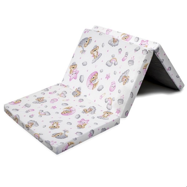 Skládací matrace New Baby STANDARD 120×60×5 cm z odolné polyuretanové pěny T-1830 pro pohodlný a zdravý spánek. Antialergický, snímatelný bavlněný potah, pratelný do 30 °C. Vhodná do postýlek i většiny cestovních.