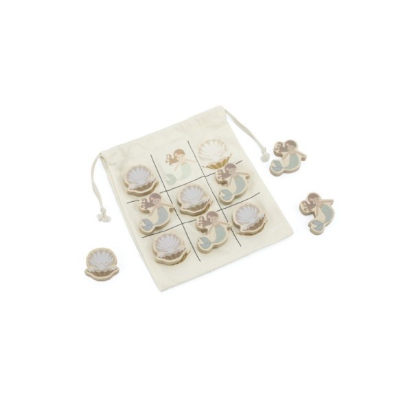 Dřevěná hra Tic Tac Toe, kde vyhrává hráč, který seřadí 3 piráty nebo truhly s pokladem / 3 mořské panny nebo 3 perly/. Možno horizontálně, vertikálně nebo diagonálně. Figurka jsou z masivního dřeva a uložené v bavlněném pytlíku.