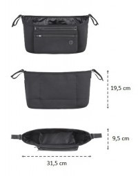 Organizér na kočárek je úžasnou pomůckou pro každou maminku. Pomocí popruhů se suchým zipem jej jednoduše připevníte na jakýkoli typ kočárku. Dvě boční přihrádky uskladní láhev, termosku nebo hrnek s kávou. Do velké prostřední přihrádky snadno umístěte vše co potřebujete během procházky či výletu. Přední odnímatelnou kapsu můžete používat i samostatně. Je vhodná pro uskladnění mobilu a obsahuje také port pro sluchátka, takže během kočárkování můžete poslouchat svou oblíbenou hudbu, případně telefonovat. Pokud si uděláte zastávku na dětském hřišti, jednoduše odzipujete kapsu s mobilem a jinými cennostmi a vezmete si ji s sebou. Během kočárkování budete mít vše přehledně uspořádané, vždy po ruce a nebudete potřebovat žádnou kabelku. Vlastnosti: - Univerzální velikost, přizpůsobí se jakémukoli kočárku - Jednoduché připevnění pomocí popruhů se suchým zipem - Odnímatelná přední kapsa - Maximální nosnost 2 kg Rozměr: 31,5 x 19,5 x 9,5 cm Š x V x H