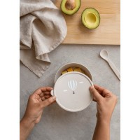 Silikonový kryt na misku, který udrží potraviny déle čerstvé. je vhodný pro použití na naše misky z BIO materiálu, ale i na většinu průměrně velkých dětských misek.