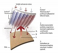 • obsahuje vrstvu termoregulačního materiálu Outlast®, která vytváří ideální teplotní podmínky reguluje vznik potu a omezuje pocení až o 40%, je tedy vhodný i pro ty, kteří trpí kožními problémy