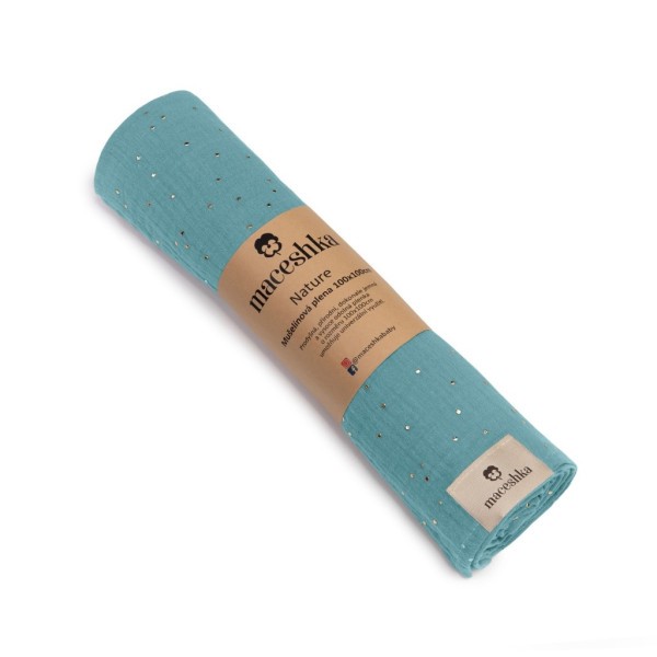 Vyberte si Mušelínovou plenu Maceshka Nature se zlatým puntíkem pro maximální pohodlí a bezpečí vašeho miminka každý den.