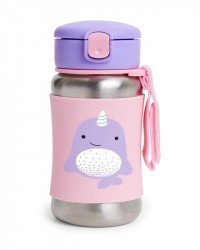 Skip Hop Zoo nerezová lahev s brčkem (12m+) má neklouzavý povrch chránící dětské ruce před chladem. Zavírací víčko zabraňuje znečištění brčka. Objem 350 ml, šroubovací víčko, praktické poutko. Bezpečné a kvalitní provedení.
