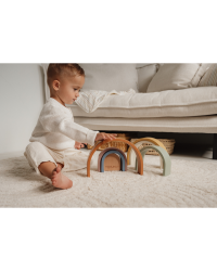 Krásná dřevěná skládačka ve tvaru duhy umožní dětem používat svou představivost k vytváření různých tvarů.