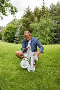 3. Tříkolka na ježdění (ride-on): Po odstranění pedálů a madla vznikne stabilní vozítko pro rozvoj motorických dovedností dítěte.