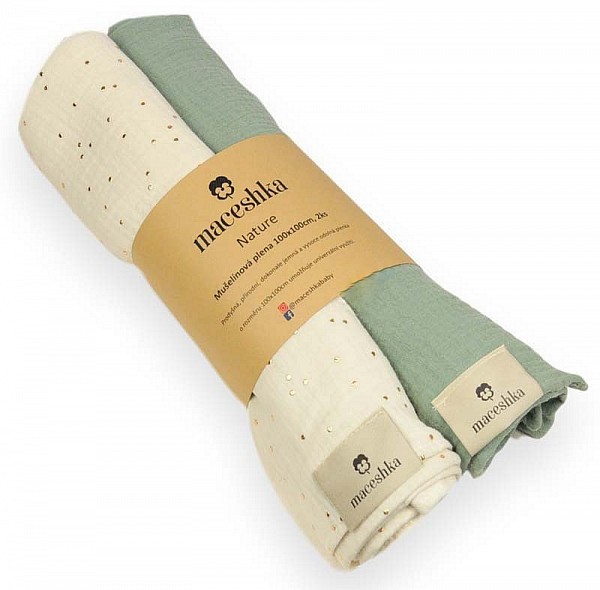 Mušelínovou plenu o rozměru 100x100cm můžete využít jako plenku, zavinovačku nebo lehkou dečku. V balení jsou 2 ks.