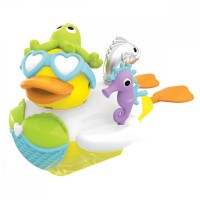 Pro aktivaci kachny stiskněte tlačítko na přední straně. Všimněte si, že když voda stříká z děla přímo dozadu, kachna plave rovně dopředu. Když se dělem otáčí do stran, kachna se otáčí ve vodě. Různé otočení děla kachny ovlivní její plavání. Vytvářejte různé motivy kachny vložením příslušných doplňků do jednotlivých otvorů.