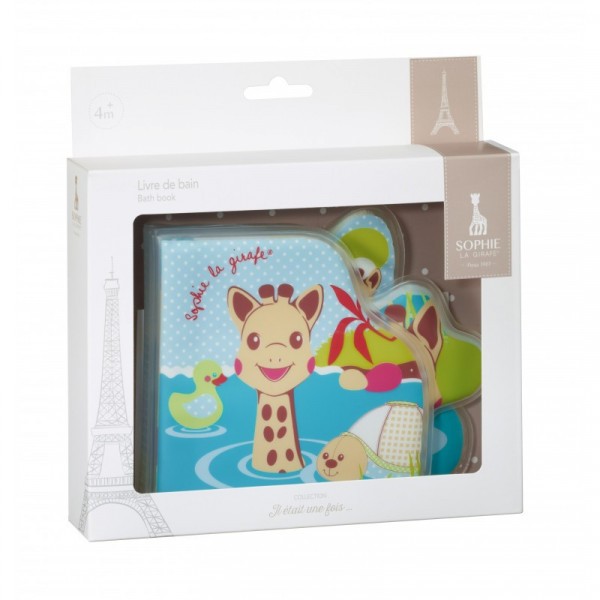 8 stránková knížka do vany pro nejmenší s žirafkou Sophií a želvou Margot. Barevná a zábavná, povzbuzuje dítě k vymýšlení příběhů.
