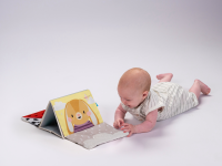 Textilní knížka ve tvaru stolního kalendáře s kontrastními obrázky, šustícími prvky a zrcátkem je ideální pro hru na bříšku. Stimuluje smysly, podporuje zrakový a motorický vývoj. Rozměry: 30 x 20 cm. Pro děti od narození.