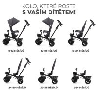Tříkolka AVEO roste s dítětem, má otočné sedadlo, bezúdržbová kola, bezpečnostní prvky a snadné skládání. Skvělý parťák na procházky od 9 měsíců do 5 let!