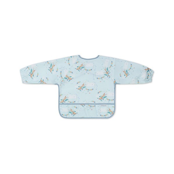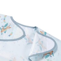 Bryndák s rukávy chrání oblečení dítěte před nečistotami, má kapsu na drobky a pružné gumičky na rukávech pro lepší přizpůsobení. Snadno se čistí, voděodolný, zapínání na suchý zip.