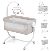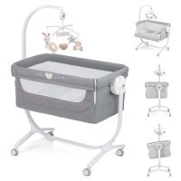Postýlka Cullami: ideální pro novorozence do 9 kg, s 8 nastavitelnými výškami, kovovým rámem a kolečky pro snadný přesun. Nabízí možnost připevnění k posteli rodičů, polohování lůžka a měkké polstrování pro maximální pohodlí vašeho miminka.